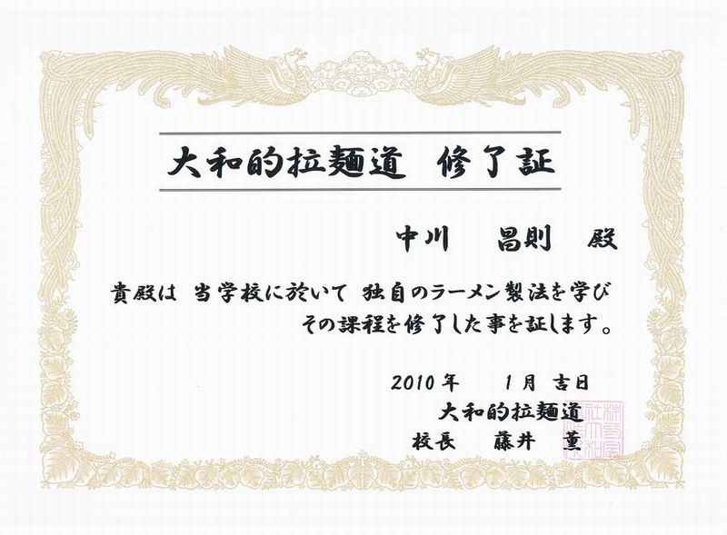 大和的拉麺道終了証